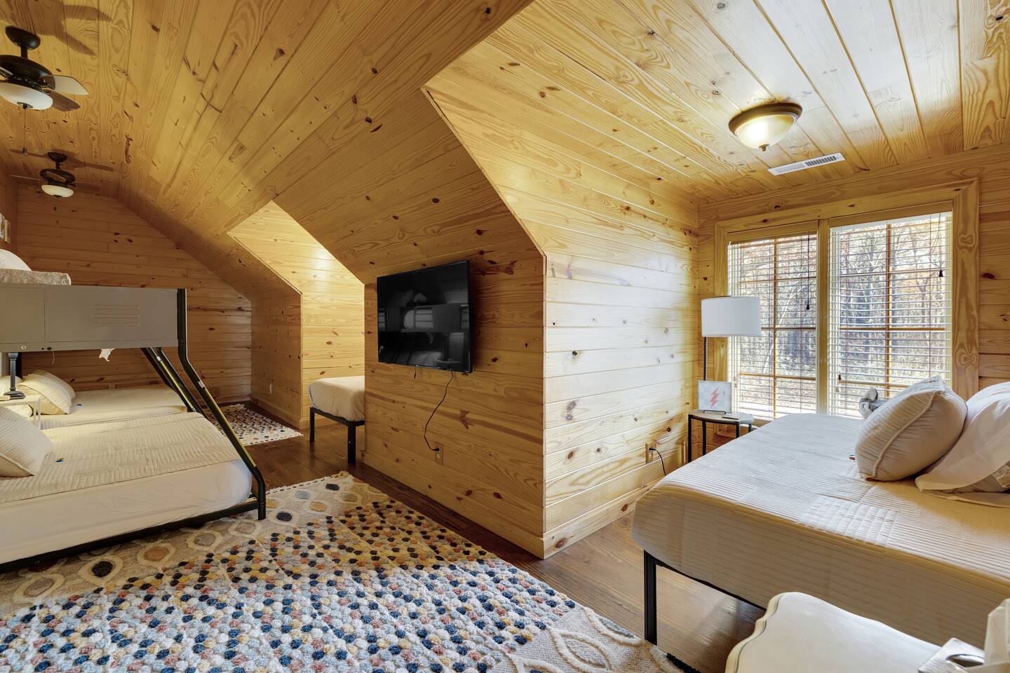 Escape to our spacious 6-bedroom, 5-bath lodge with 3 stories of deck space offering stunning views. Ideal for large groups or families, this cabin features a fully equipped chef’s kitchen, multiple living areas, and plenty of room to spread out and relax. Whether you're planning a reunion, retreat, or family getaway, this lodge provides the perfect blend of comfort and nature. Book now for an unforgettable stay!